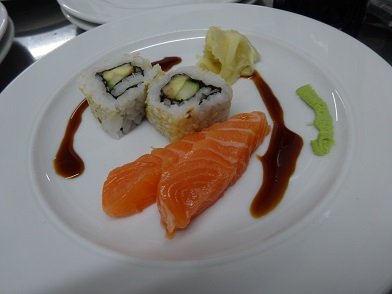 4) Gemüse-Seetangrolle und roher Lachs Label Rouge / 野菜ののり巻きとラベルルージュの鮭の刺身