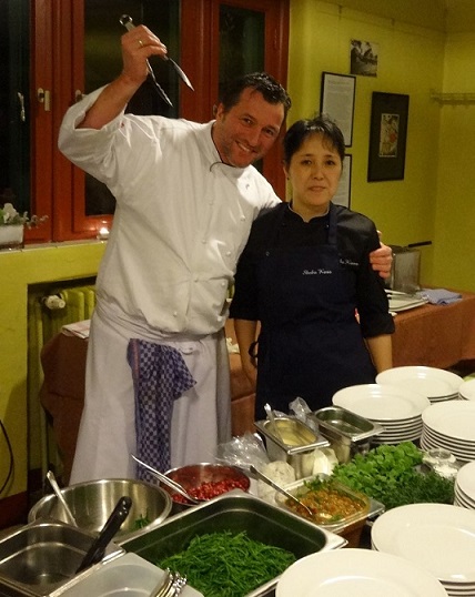 実はキッチンパーティーが開かれ、このカフェのオーナーシェフが同僚とワインセラーの人たちに応援を呼びかけたのです。
