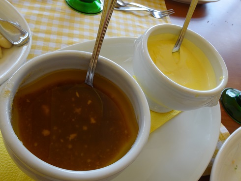 もちろん、アスパラにかけるソースとしてホーランデイズソースとパン粉を入れた溶かしバターも忘れてはいけません。食事の最後はアイスとイチゴで締めくくり。アスパラの時期はイチゴの時期でもあるのです。