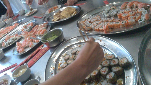 Aus meiner Erfahrung könnte ich sagen, dass die Arbeit der Schüler sehr gut war. Wir hätten die fertigen Sushis verkaufen können.