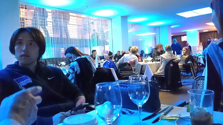 ヘルタベルリン対バイエルンミュンヘンの観戦チケットは、発売開始の3時間ほどで売り切れました。それをヘルタベルリンの原口元気君に話したら、観戦に招待してくれると約束してくれました。そして、特別VIP客として、選手やその家族が食事をしたり時間をつぶしたりするラウンジに案内されました。