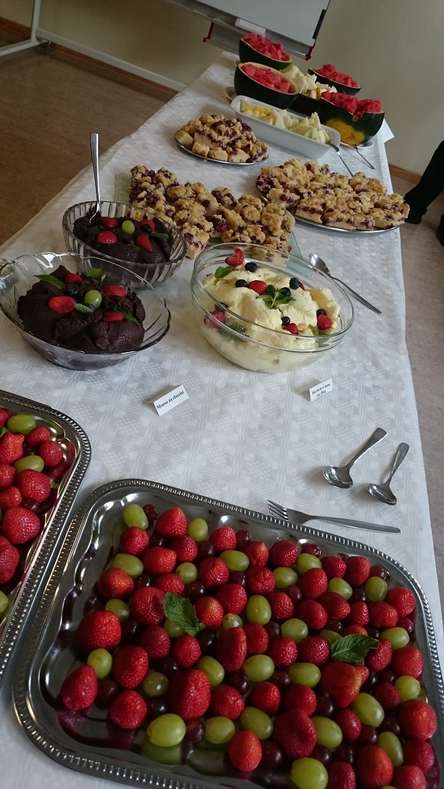 2016年6月17日にベルリンのヘラースドルフ地域にある国民大学(フォルクスホッホシューレ)にて夏祭りが催され、従業員と教員が集まりました。催し物の前に、新しく就任した校長が挨拶をし、ビュッフェが開かれました。いろんな飲み物とおいしい料理がありました。