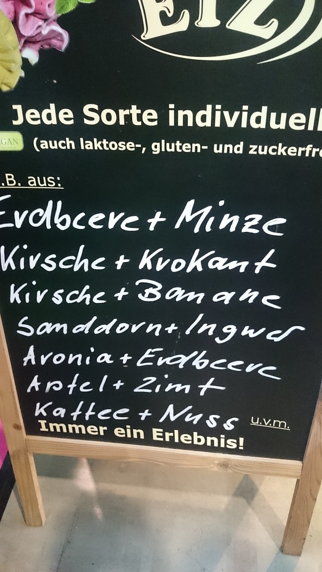 ここでは数種類のコンビネーションが組まれていて、明花さんはサンドドーン(日本語で何というのかわからない)と生姜、うちのダンナはサクランボとバナナ、私はコーヒーとナッツ。どのコンビネーションもあんまり合っていませんでした。エアフルトの方がおいしかったなぁ。