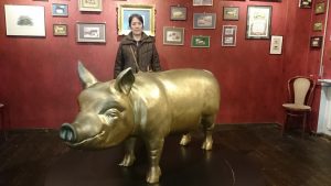 Ich habe gedacht, dass das Schweinemuseum die Geschichte von Schweineschlachten und das Leben der Züchter und der Metzger erzählen würde, aber das, was wir gesehen haben, war die Sammlung von Schweinefiguren in jeglicher Form.