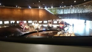 メルセデスベンツのミュージアムはすごいです。まず建築がとても素晴らしく、展示物が自動車産業の歴史を語り、クラッシュテスト(?)のキャビンがあったりで、誰が行っても面白いように作られています。素晴らしい。