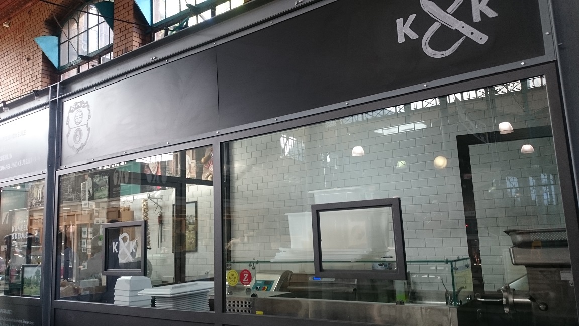 Ich kenne Jörg Förstera seit langem, und als er Fleischermeister wurde, war er der jüngste Fleischmeister. Er hat Karriere in der Fleischerfachschule und in KaDeWe hinter sich und hat einen kleinen Laden in der Markthalle Neun eröffnet. Heute hat er uns vieles über 36m² kleinen Laden erzählt, in dem 34 Tonnen Fleisch pro Monat bearbeitet wird.