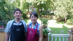 友達の誕生日で、私が料理を作る。うちのダンナが休みだったので、盛り付けを手伝ってもらう(それぞれ5人分ずつ盛っています)。