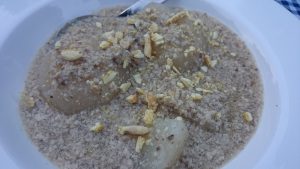 gekochte Mairübchen mit Hühner-Pilz-Sauce / Lachs mit Zwiebel-Miso-Sauce
