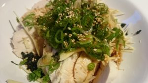 Seetangrolle / Hühnerfleisch mit Würzsauce