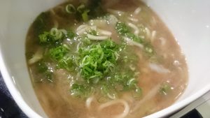 blanchierte Kalbsfleischscheiben mit Sansho-Pfeffer / Udon-Nudelsuppe