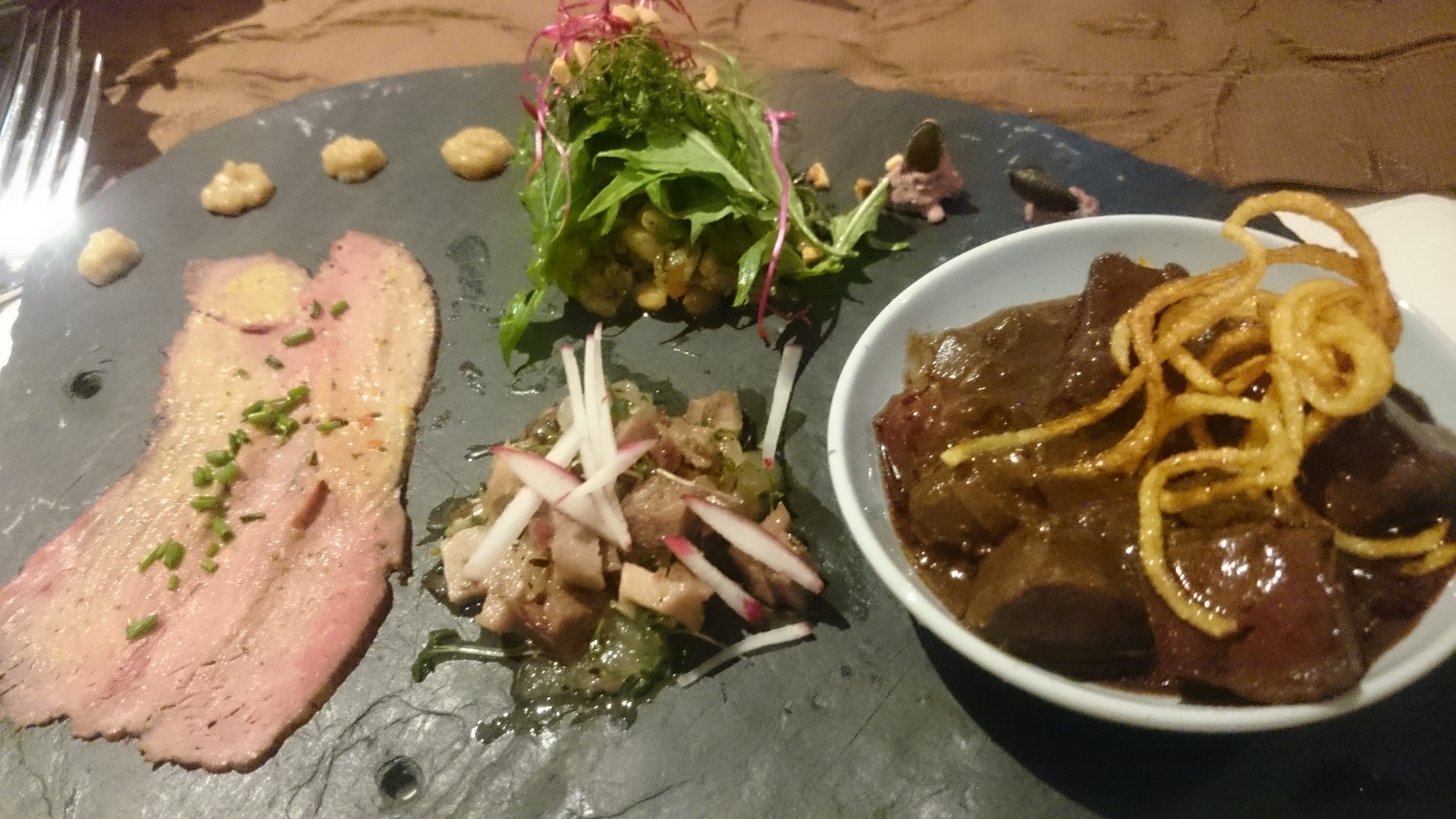 夕食にはJagdhaus Rechにテーブルを予約しておきました。そのレストランでは野獣(イノシシ、シカ、ウサギなど)が食べれます。私たちはスローフード、メニューを注文しました。