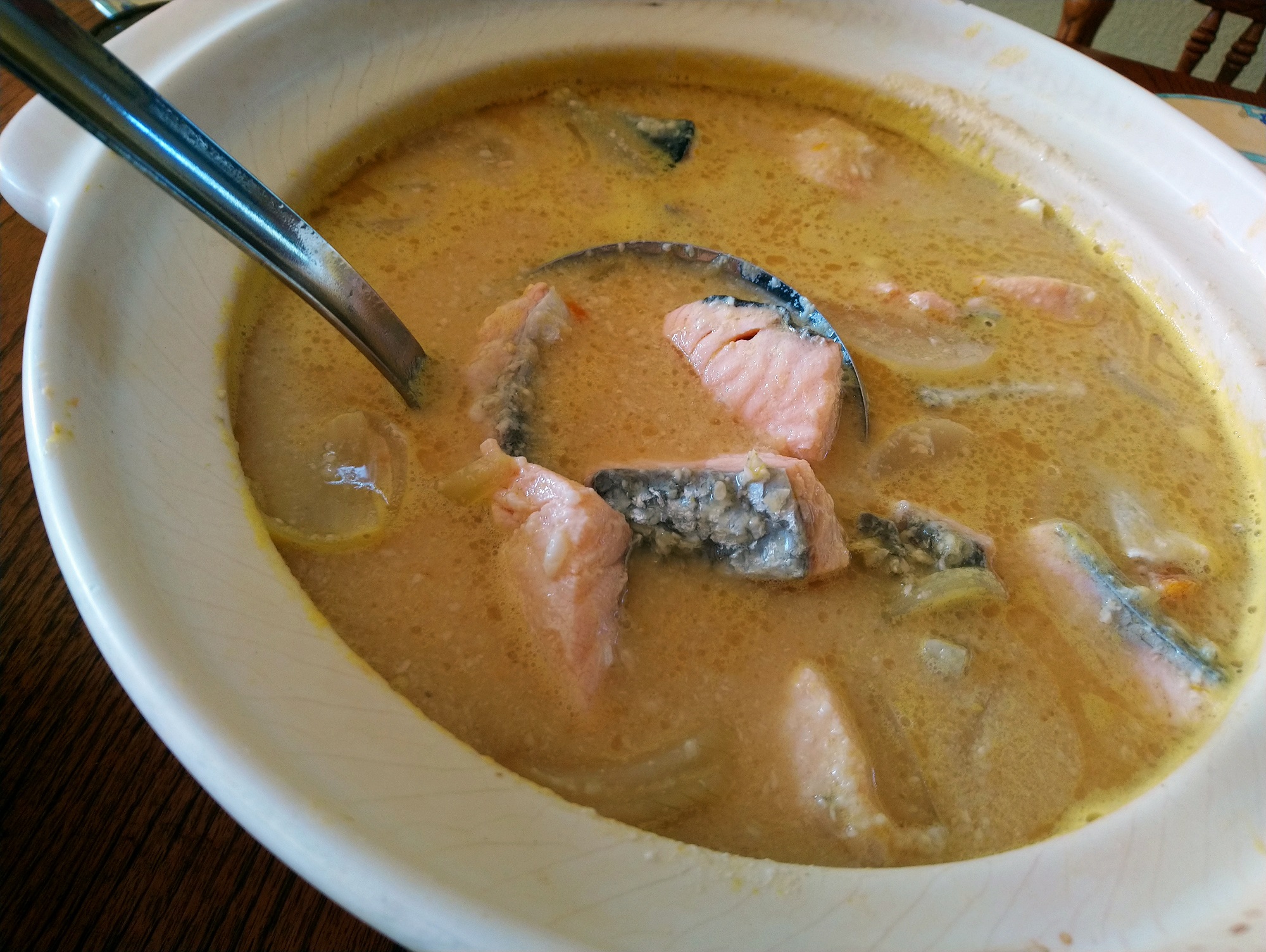 塩麹漬けの鶏肉の柔らか煮 / 塩麹につけた鮭の酒かす汁